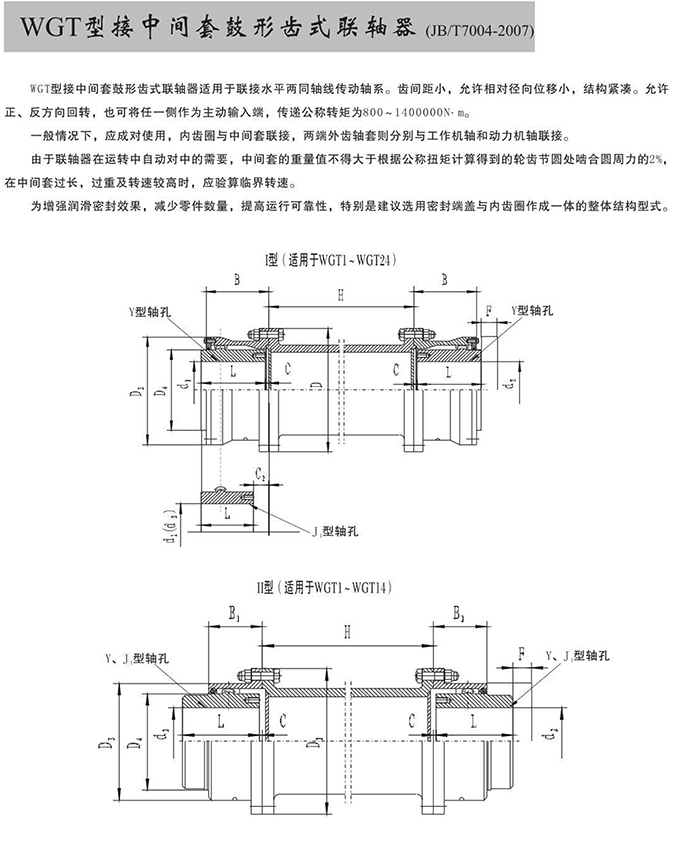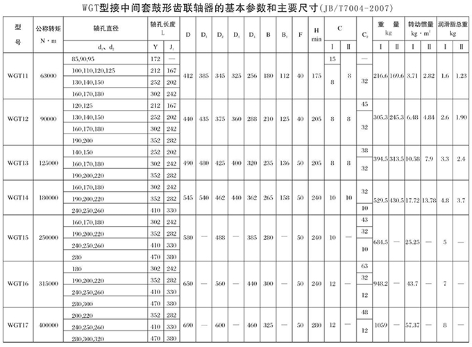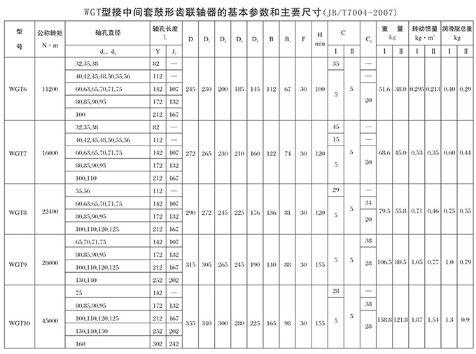 瑞安市寶德隆機械配件有限公司提供WGT型接中間套鼓形齒式聯(lián)軸器具有拆裝方便,快速安裝等特點,廣泛用于連接/固定輪轂孔和零件的軸,例如齒輪,錐齒輪,鏈輪,葉輪,凸輪,皮帶輪和飛輪等軸的聯(lián)結(jié)固定,咨詢電話:18906872378